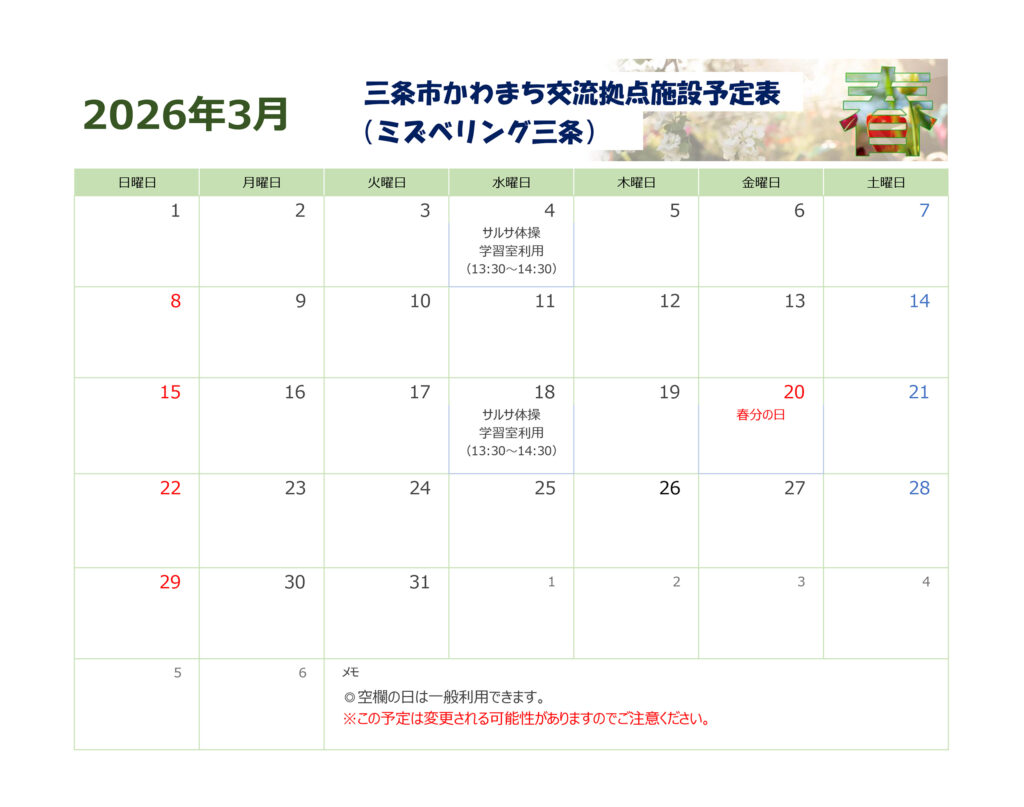 いつもミズベリング三条をご利用いただき、誠にありがとうございます。