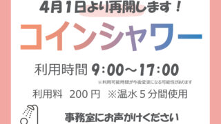 お知らせ2026年4月1日コインシャワー利用再開します