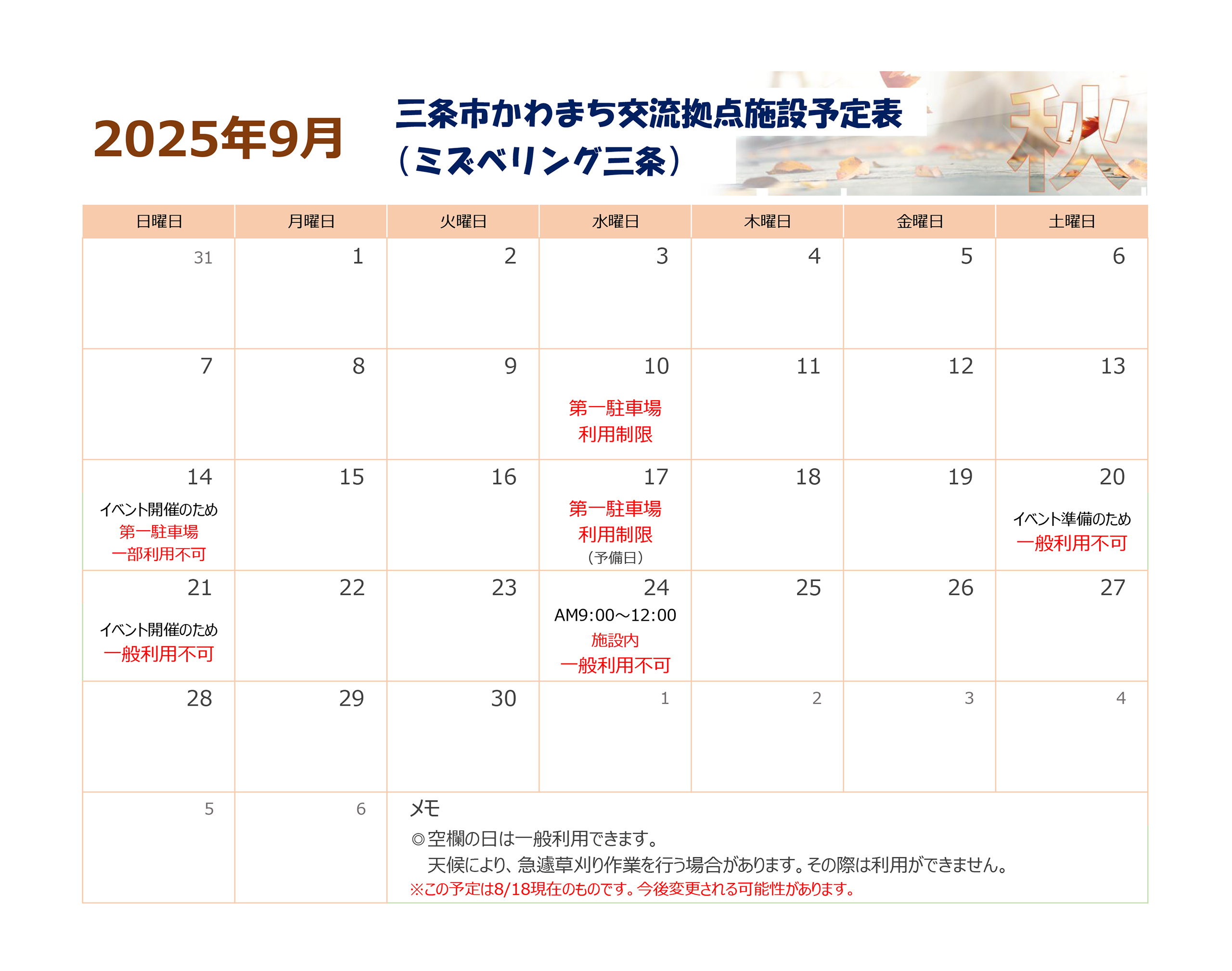 交流広場の草刈りのために利用に制限をかける場合は、改めて事前にお知らせいたします。