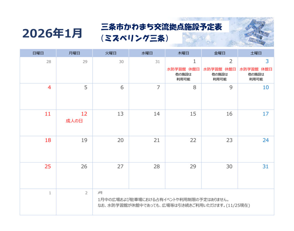 いつもミズベリング三条をご利用くださり、ありがとうございます。